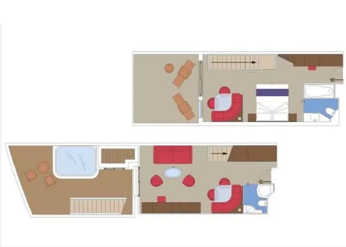 | YCD - Yacht Club Duplex Suite 46 m² + balkón 6 m². 2 podlažia, 2 kúpeľne (1 s vaňou). Max 4 osoby. 16. paluba. Cenový model MSC Yacht Club. Easy package v cene | 9 524 € 4 762 € za osobu | ||